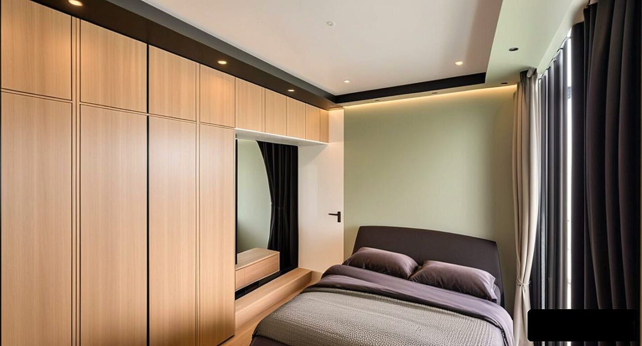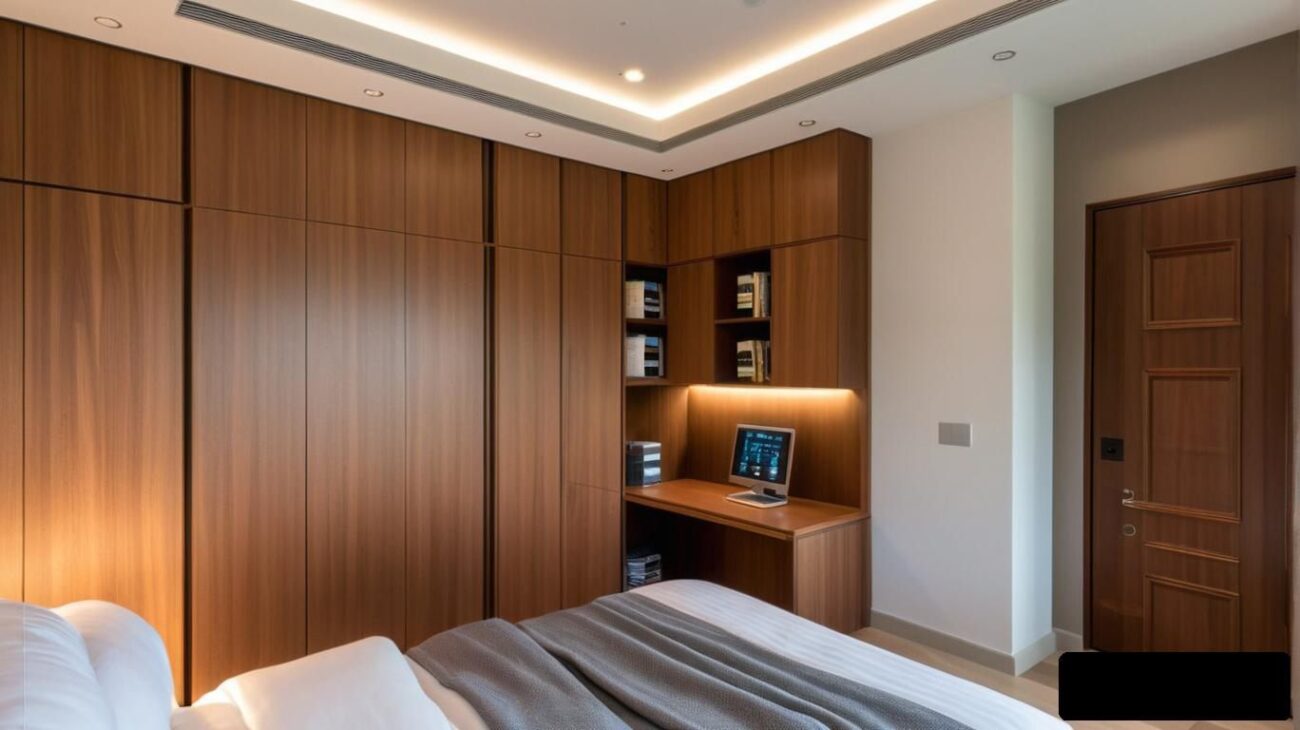 A wardrobe is essential for keeping your bedroom organized. Consider wall-mounted wardrobes with glass panels for a sleek, modern look. The wardrobe should blend seamlessly with the room’s design, so choose a color that matches your walls. Modern wardrobes with sliding doors or built-in shelves offer convenience and add to the room’s elegance.